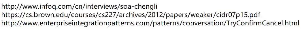 关于TCC(Try-Confirm-Cancel)的概念,最早是由Pat Helland于2007年发表的一篇名为《Life beyond Distributed Transactions:an Apostate’s Opinion》的论文提出。在该论文中,TCC还是以Tentative-Confirmation-Cancellation作为名称;正式以Try-Confirm-Cancel作为名称的,可能是Atomikos(Gregor Hohpe所著书籍《Enterprise Integration Patterns》中收录了关于TCC的介绍,提到了Atomikos的Try-Confirm-Cancel,并认为二者是相似的概念)。