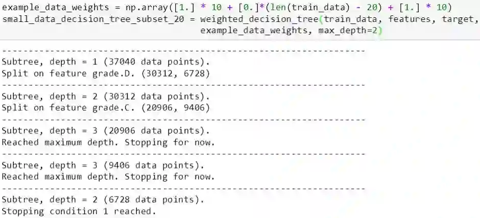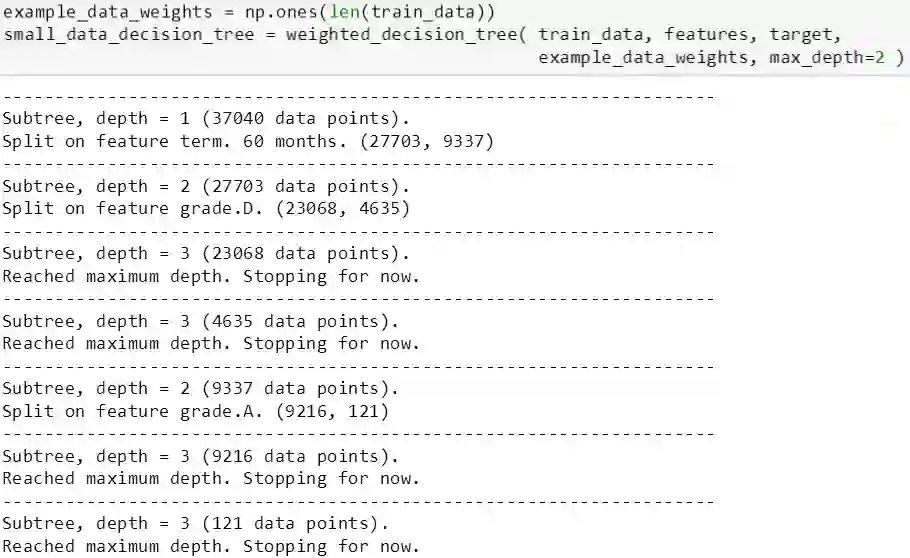 反之,用递推方法继续用 weighted_decision_tree 来创建子树,这时 current_depth 在原来基础上加 1