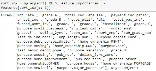 最后反向打印出特征,发现 int_rate, grade.A, total_rec_late_fee是三个最重要的特征