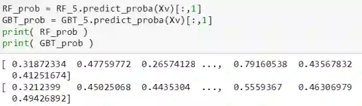 之后将 RF_prob, GBT_prob 和验证数据 vali 合并成一个新的数据表,并用 argsort() 找到排序对应的索引 RF_sort_idx 和 GBT_sort_idx。