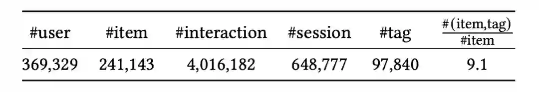 论文的数据集是在快手推荐页场景内通过采样部分活跃用户,按照 session 维度进行聚合后获得的样本。最终数据集的统计数据如下: