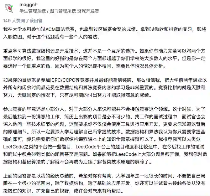 知乎用户@maggch就指出,这两个选择不是互斥的。如果真的想要在计算机领域有所成绩,那么两个部分都需要你付出努力。
