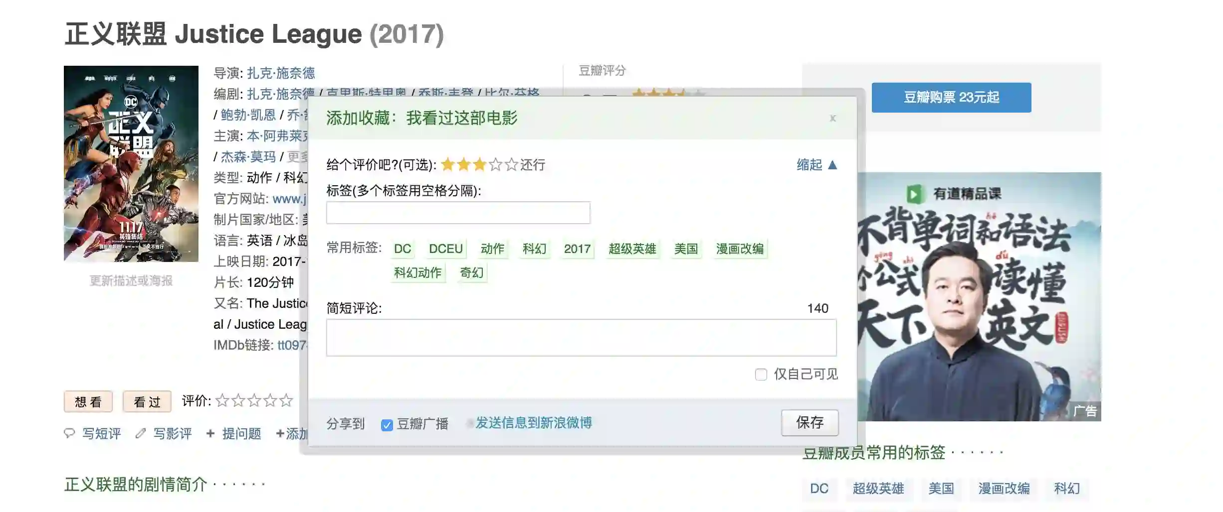 常见的基于标签(UGC)的推荐有豆瓣: