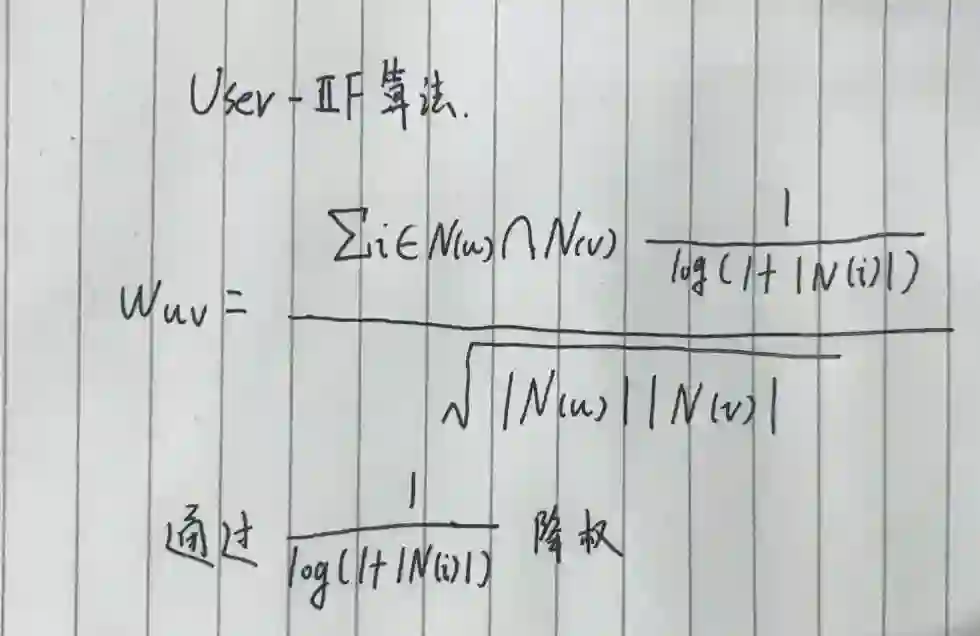 相似度公式的分子,再除以分母√|N(u)||N(v)| 就可以得到最终的用户兴趣相似度。
