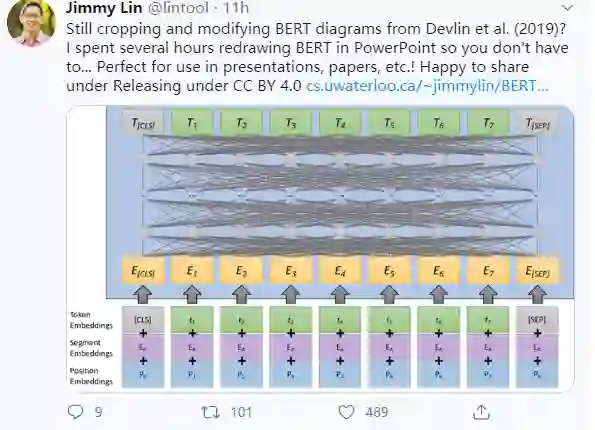 来自滑铁卢大学Jimmy Lin教授用PowerPoint绘制的BERT架构图,可方便用于论文和Slides,以CC BY 4.0共享发布
