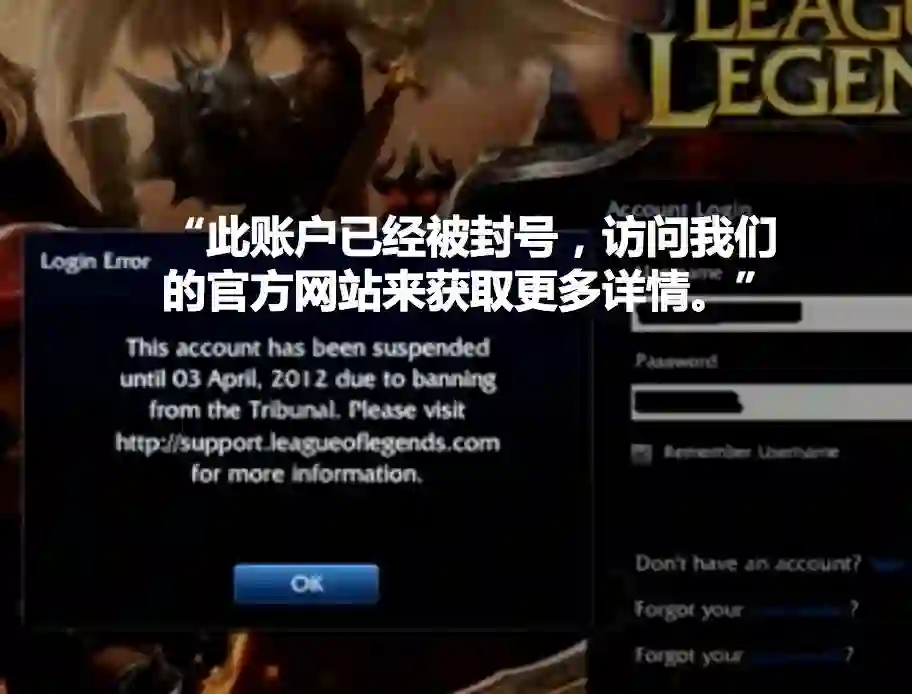 当玩家被暂时封号的时候,LOL最早只给用户显示这样的提示内容: