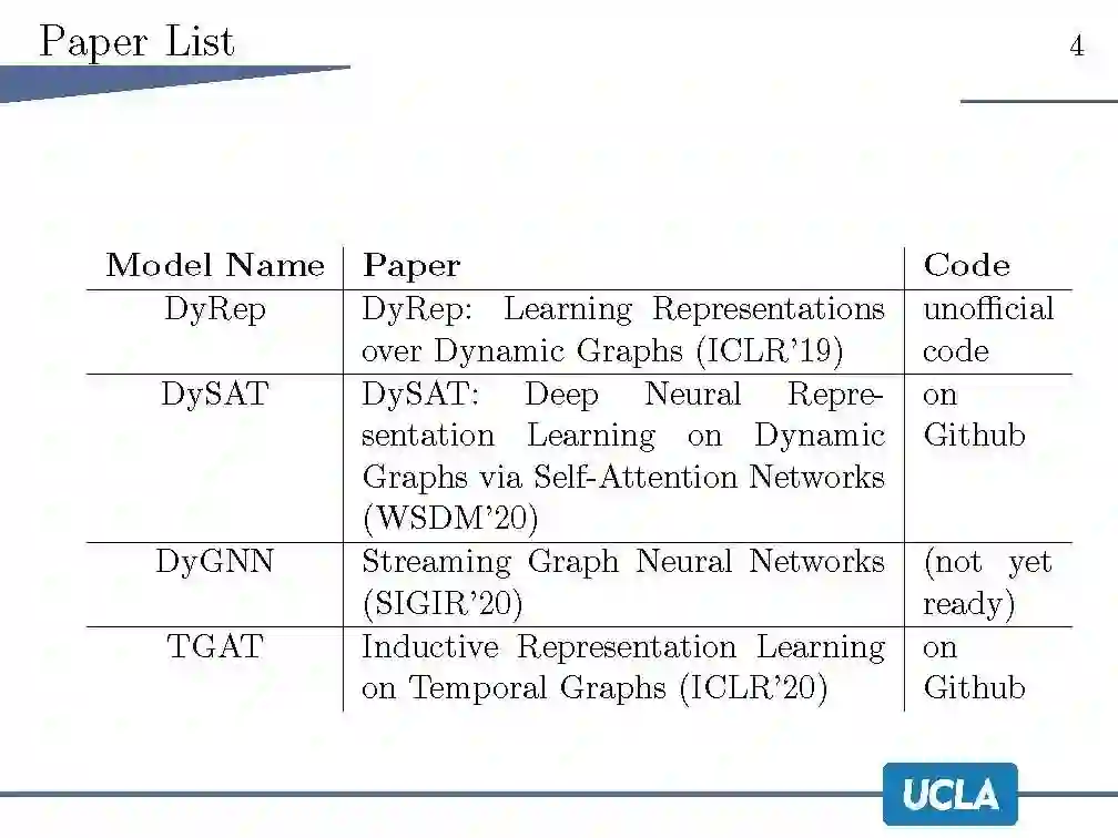 后台回复“DGRL” 就可以获取《【UCLA】动态图表示学习,40页ppt,Dynamic Graph Representation Learning》专知下载链接
