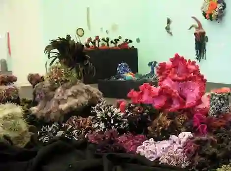 玛格丽特·威特海姆(Margaret Wertheim)在 2009 年的 TED 大会展示来自全世界各地人民创造不同的针织珊瑚和海蛞蝓模型, 它们色彩斑斓千姿百态, 与真实的相差无几. 为什么要用技术, 因为许多珊瑚礁生物的形状结构都很特别, 那些珊瑚、海绵等生物上看到的类似衬裙的镶褶边形状, 实际上是一种称为双曲线的双曲几何(hyperbolic geometry)形状。 而数学家们所知的模拟这种结构的唯一方法, 就是要靠编织.