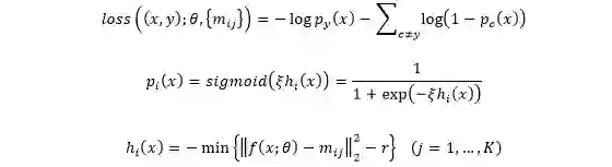 为半径构建原型球。基于此,每个类对应原型球并集即为该类的合法区域。对于训练样本,我们显式地要求其属于正确类的合法区域,同时要求其不属于其他所有非正确类的合法区域,由此导出了对应的OVA损失。经过具体推导后,OVA具体定义为: