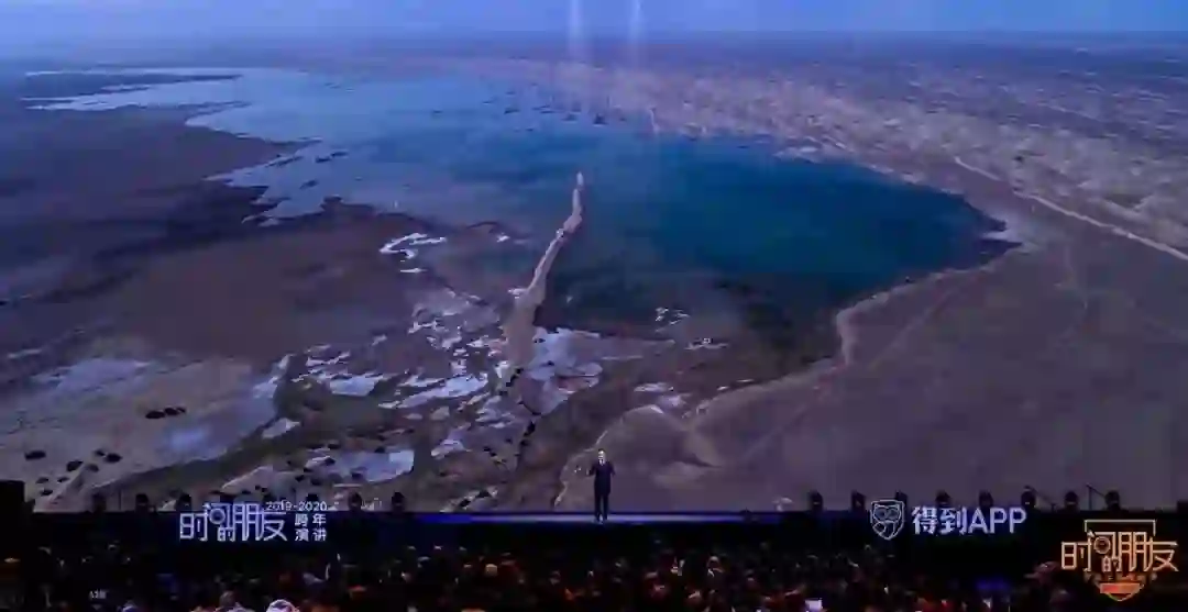 再说第三件事。去年我看到了一段新闻,心情很激动。在中国的西北角,甘肃敦煌,有一个沙漠中的湖泊,叫哈拉齐,跟西湖差不多大。这个湖在此之前已经干枯了差不多300年。但是现在复活了。