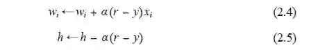 • 实际输出 y 与期望输出 r 相等时,wi 和 h 不变