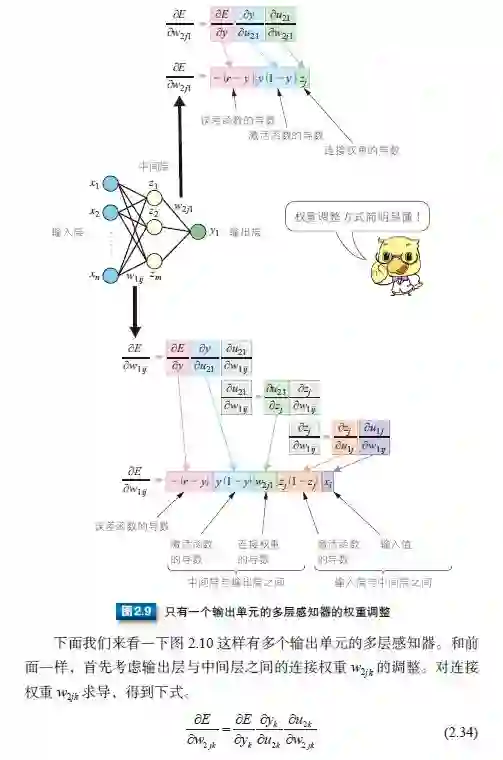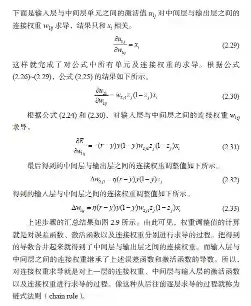 ① 公式(2.15) 中添加1/2,是为了对E 的(rj - yj)2 求导时不产生多余的系数。