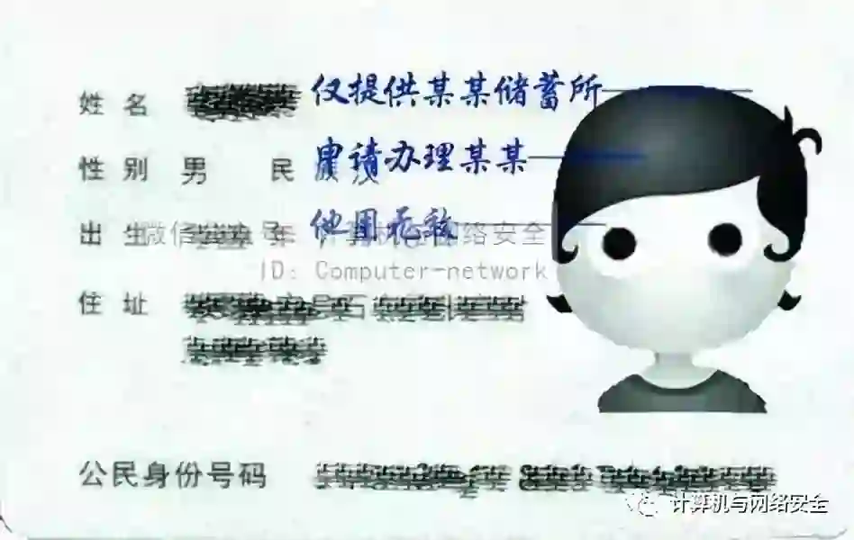 以身份证为例,无论是申请信用卡,办理房贷……只要须附身份证复印件的,一律要记得签注。要用蓝色或者黑色签字笔,部分笔画与身份证的字交叉或接触,每一行后面一定要划上横线,以免被偷加其它文字。