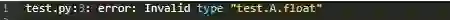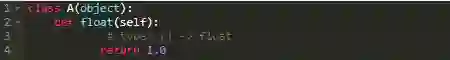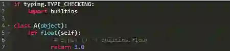 有人可能会问这到底是怎么回事。我给返回值的定义是float类型而不是test.A.float类型。出现这种混淆错误的原因时类型提示通过定义的位置出发评估每一个遇到的范围来解析类型。一旦找到匹配的名称,它就停止了。本例中类型提示所查找的第一层次是在类A中,在这里它找到了一个float(float函数)并进行了替换。
