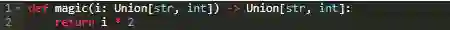 你输入的类型是str或者int,你的返回值相应的也是str或int。然而,如果如上图中那样做,你实际上是在告诉类型提示输入的类型可以是这两种类型中的任意一种。因此,作为调用方,你需要声明调用的类型:
