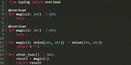 这种不便可能会让一些人通过定义返回值为any类型来避免麻烦。但是,这儿有一种更好的解决方案。类型提示系统允许你定义重载。重载的意思是对于一个给定类型的输入只会返回一个指定类型的输出。对于本例而言: