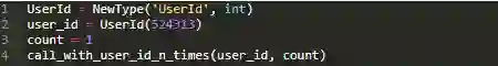 我们甚至可以对内置的数据类型重新命名,这在避免例如给一个函数以错误的顺序传入两个类型一样的参数这类的错误时很有用: