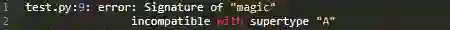 那么你觉得mypy会说什么?如果去运行你会发现mypy选择保持沉默。没错,它会将这些标记为正确的,尽管在运行时失败了。mypy的创作者说这是因为类型失配太普遍了,以致于不能禁止__init__和__new__的不匹配问题。