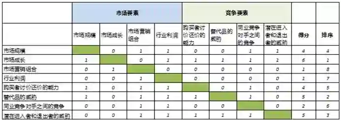 当然不是。因为每个列举的优势和劣势的重要性和发生概率都是不同的。有时候,只是定性列举会让我们无所适从,无法做出战略选择。所以我们必须对列举的各条,从不同侧面的重要程度做定量分配,对各评价因子在总体评价中的作用进行区别对待。
