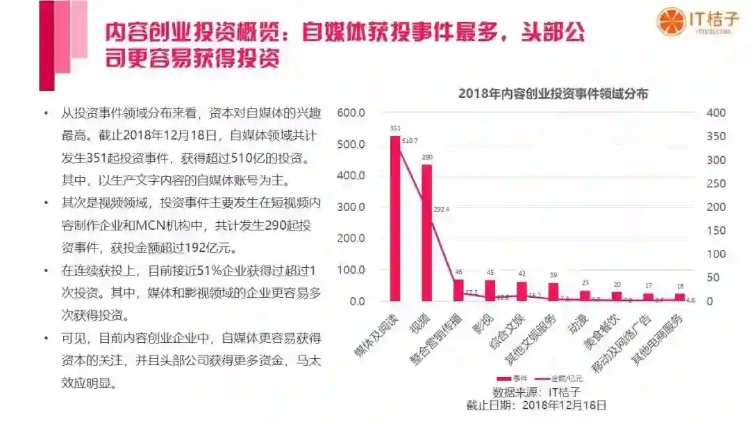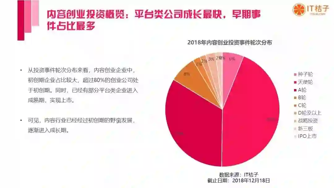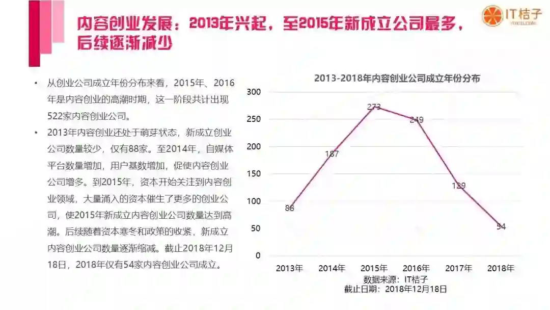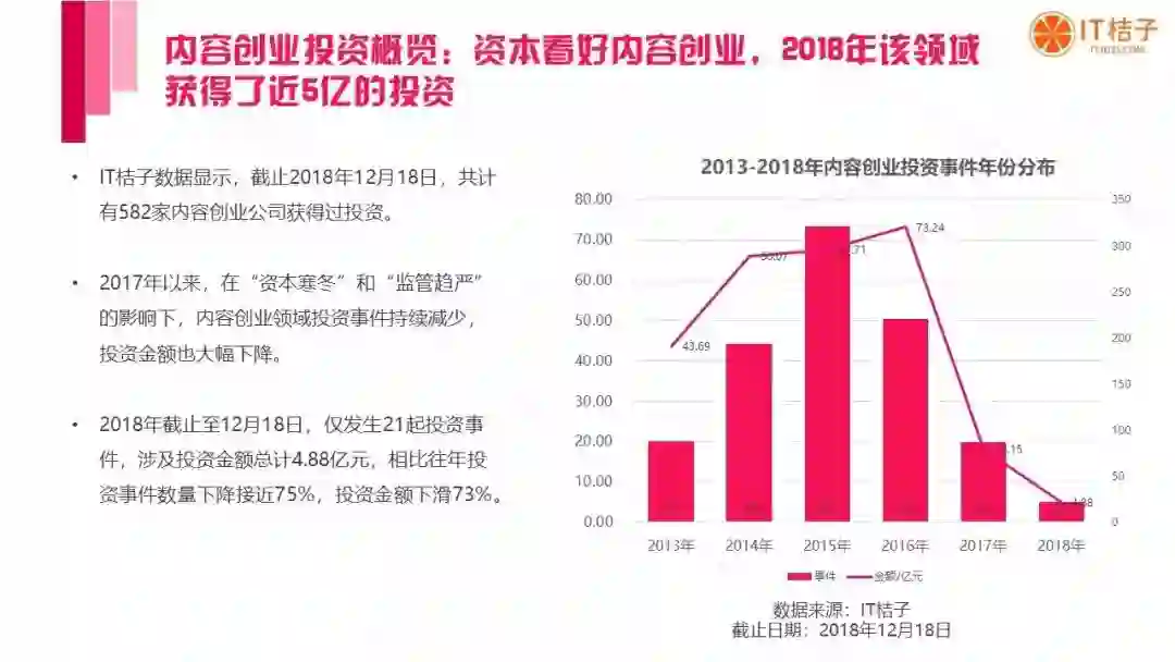 以下是 IT桔子出品的《2018 中国内容创业发展分析报告》全文: