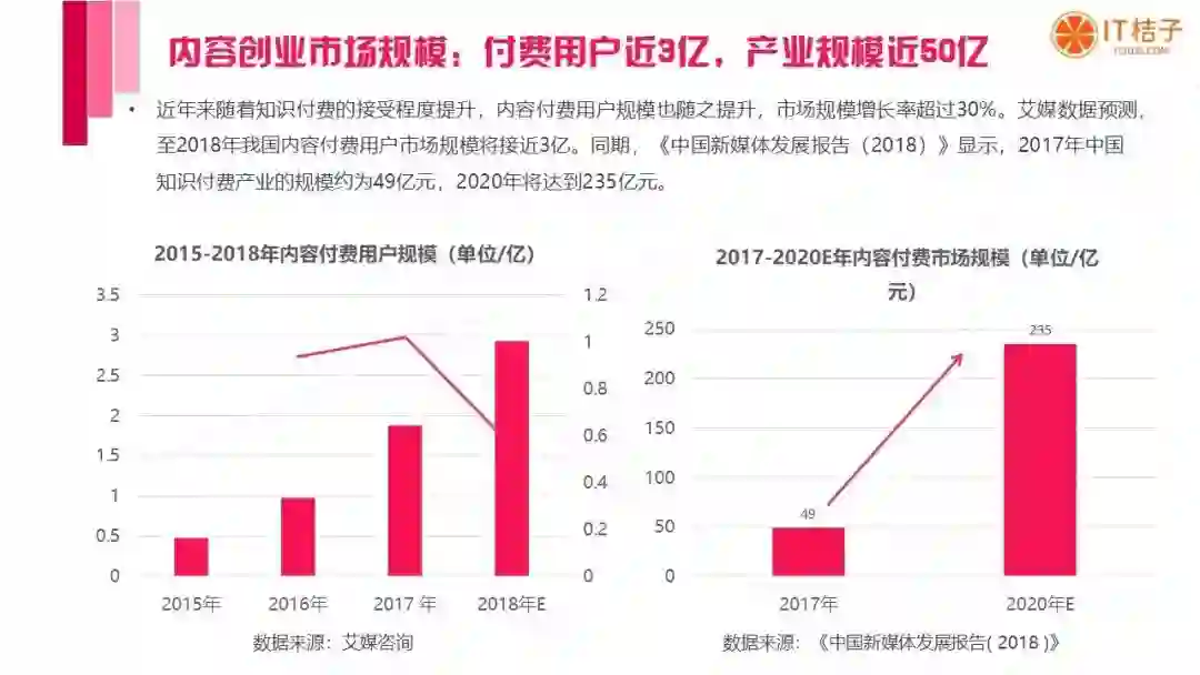 前者有诸如 papi 酱等个人创作者入局,并获得资本的关注;后者有喜马拉雅 FM 等企业入局知识付费,挖掘新兴市场……
