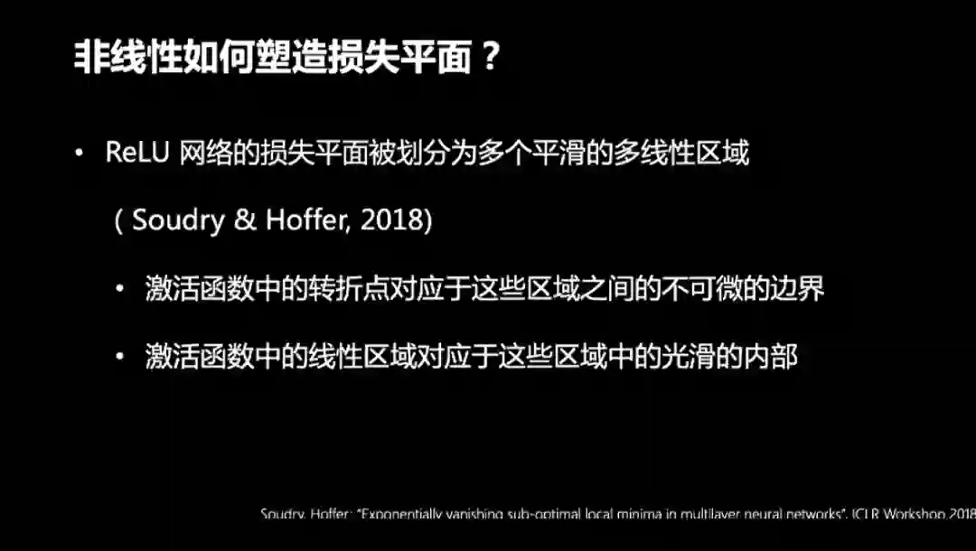 那么之前猜测的秩序有可能是什么?Soudry和Hoffer在2018年指出,ReLU网络的损失平面被划分为若干光滑的多线性区域。