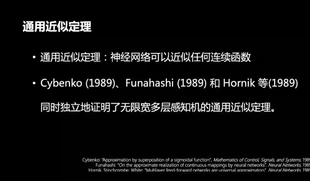 另外,也需要明确一下:神经网络的容量非常庞大,甚至具有通用的近似能力。1989年的三个独立工作,同时证明了神经网络的“通用近似定理”。