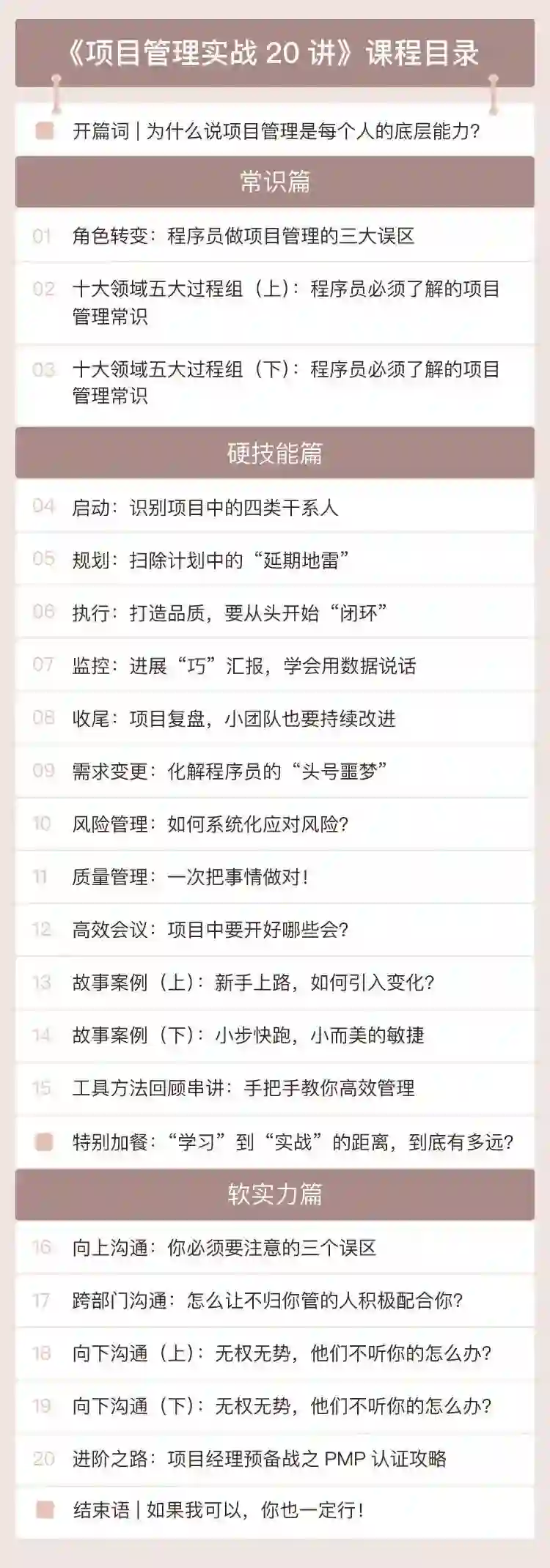 项目管理,说到底就是一种组织整合能力,是从个体走向团队,必须具备的底层能力升级包。如果你能比别人更早意识到这一点,就已经走在了很多人前面。