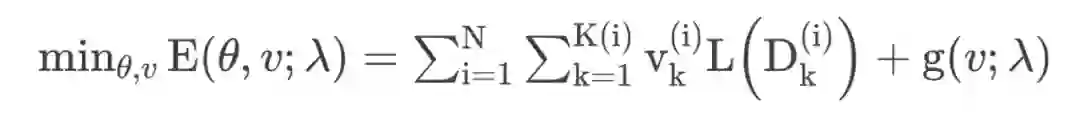 考虑到根据预定义课程进行模型训练可能会忽略学习过程的反馈,我们采用自步学习让模型根据 loss 的反馈自我调整,将课程学习的目标定义为: