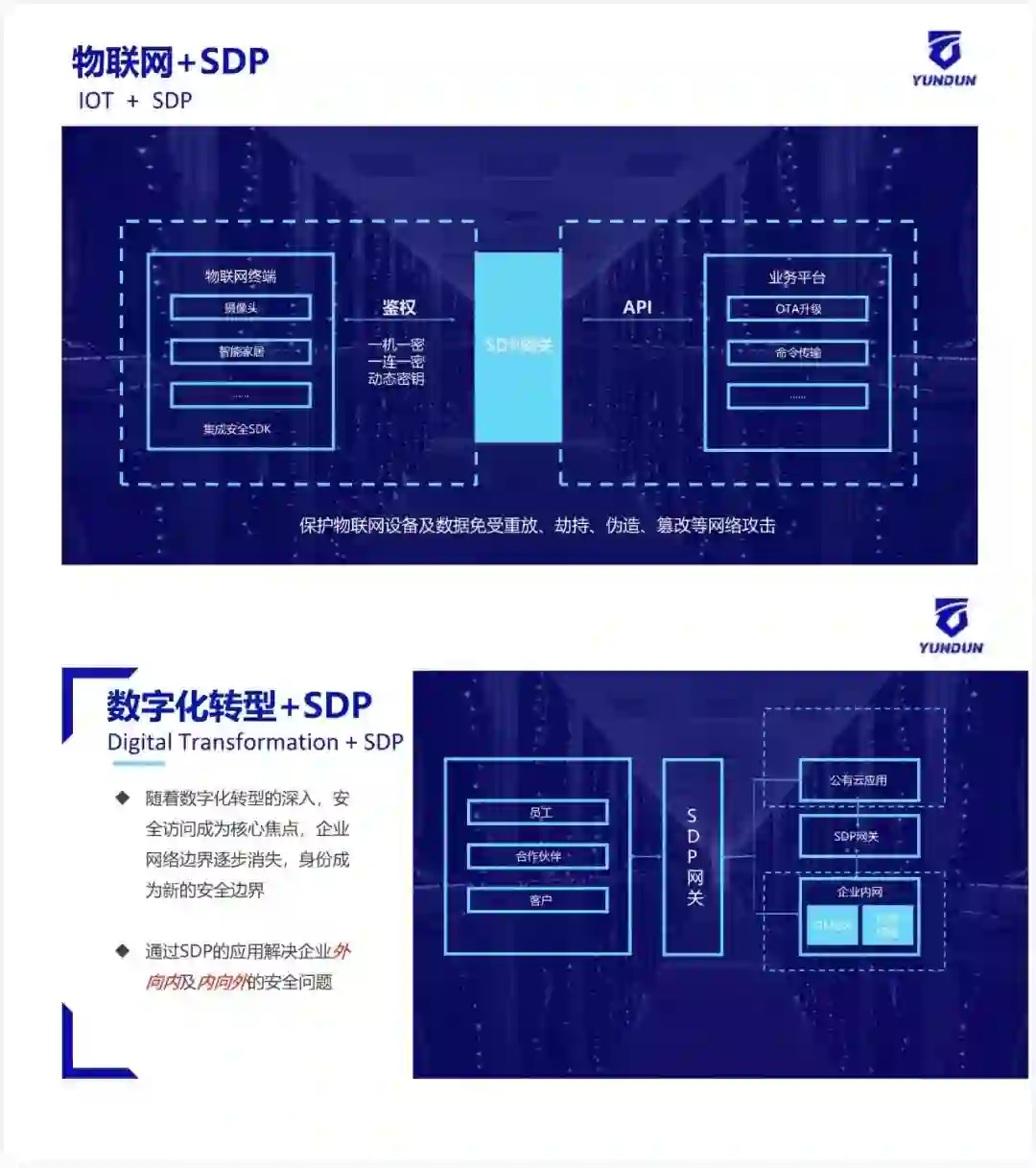 继 2013 年云安全联盟首次提出软件定义边界(Software Defined Perimeter,SDP)安全理念和零信任网络安全理念提出之后,YUNDUN 云安全发现将 SDP 软件定义边界的安全理念应用于产品方案中是云安全新趋势,新方向。