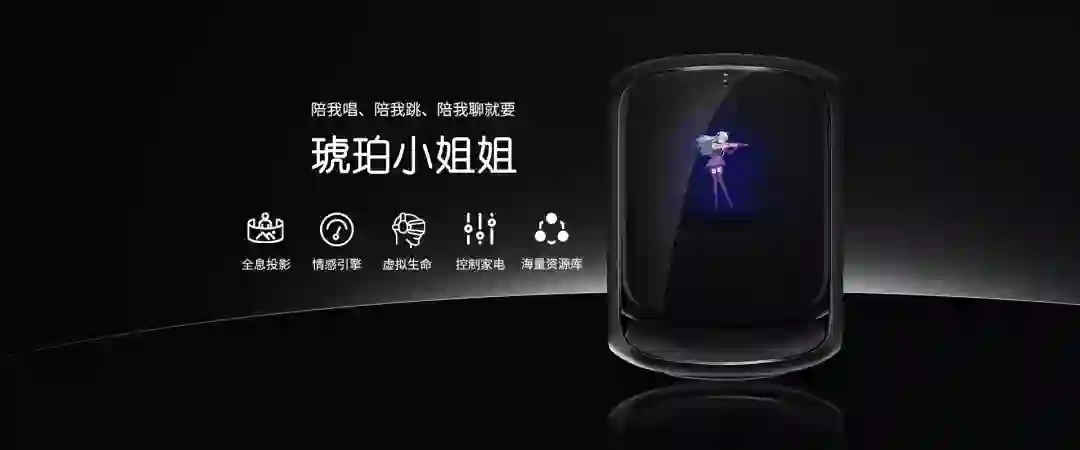 不同于一般的智能音箱,HE琥珀运用全息投影技术构建了琥珀小姐姐的形象,让AI与人的交互更真实。