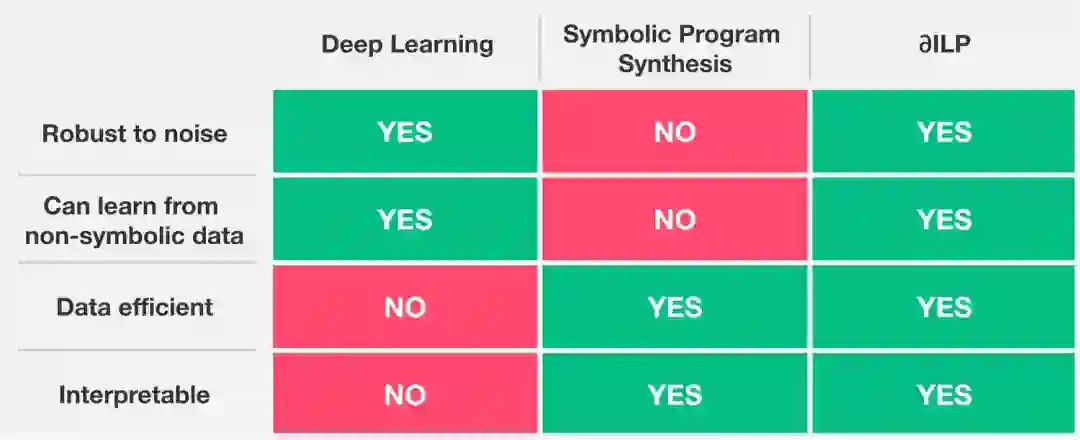 最近,DeepMind 在 JAIR 上发表论文《Learning Explanatory Rules from Noisy Data》,表明将直观感知思维和概念可解释性推理思维整合到单个系统中是可能的。他们介绍的系统∂ILP 对噪声数据具备鲁棒性,且可以高效地利用数据,并生成可解释的规则。