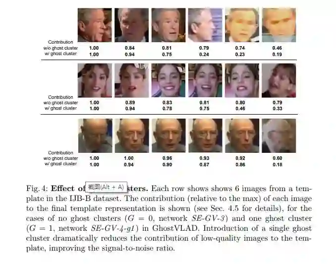 最后作者可视化了使用GhostVLAD后对输入样本权重的影响,发现对于那些低质量模糊人脸的确权重被降低了。