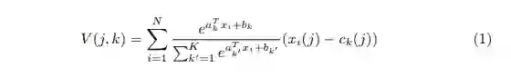 其中K是NetVLAD中手工设置的聚类中心个数,xi是第i个特征向量,ck是可训练的聚类中心,ak、bk是可训练的参数控制着加权的权重。