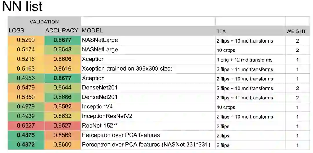 Dmytro Panchenko 和 Alexander Kiselev 设计的解决方案获得了家具第二名,他们其实也使用了多个卷积网络的集成方案。总的来说,这四个解决方案都是使用多个预训练卷积网络,它们会分别在训练集与验证集中进行学习与调参,然后再使用不同的集成方案总结各个模型的预测结果。