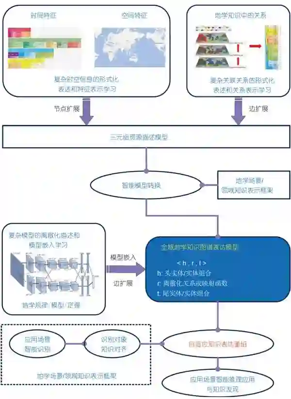 地学是研究地球各圈层形成、演化及其相互作用 的科学, 包括大气科学、海洋科学、地理学、地质学 和地球物理学等分支学科, 其学科知识体系复杂多样 (孙鸿烈, 2017). 如何兼顾地学现象与过程的多尺度时 空特征, 融合图、文、数等多种信息载体表征, 构建跨 越地球科学各分支学科的地学知识表达模式是地学知 识图谱研究的基础和出发点.