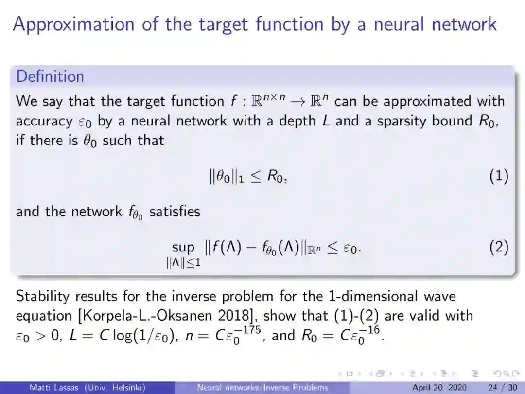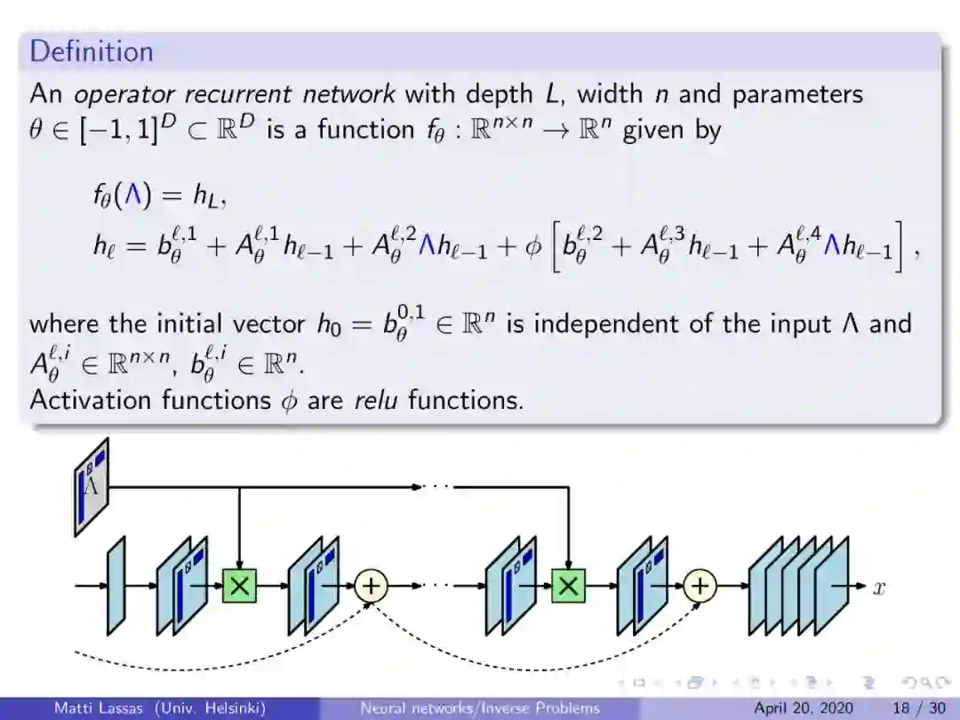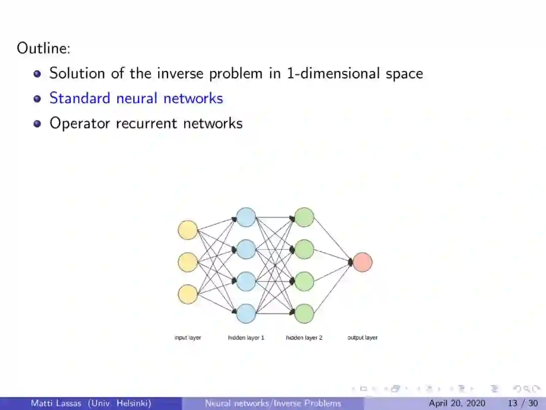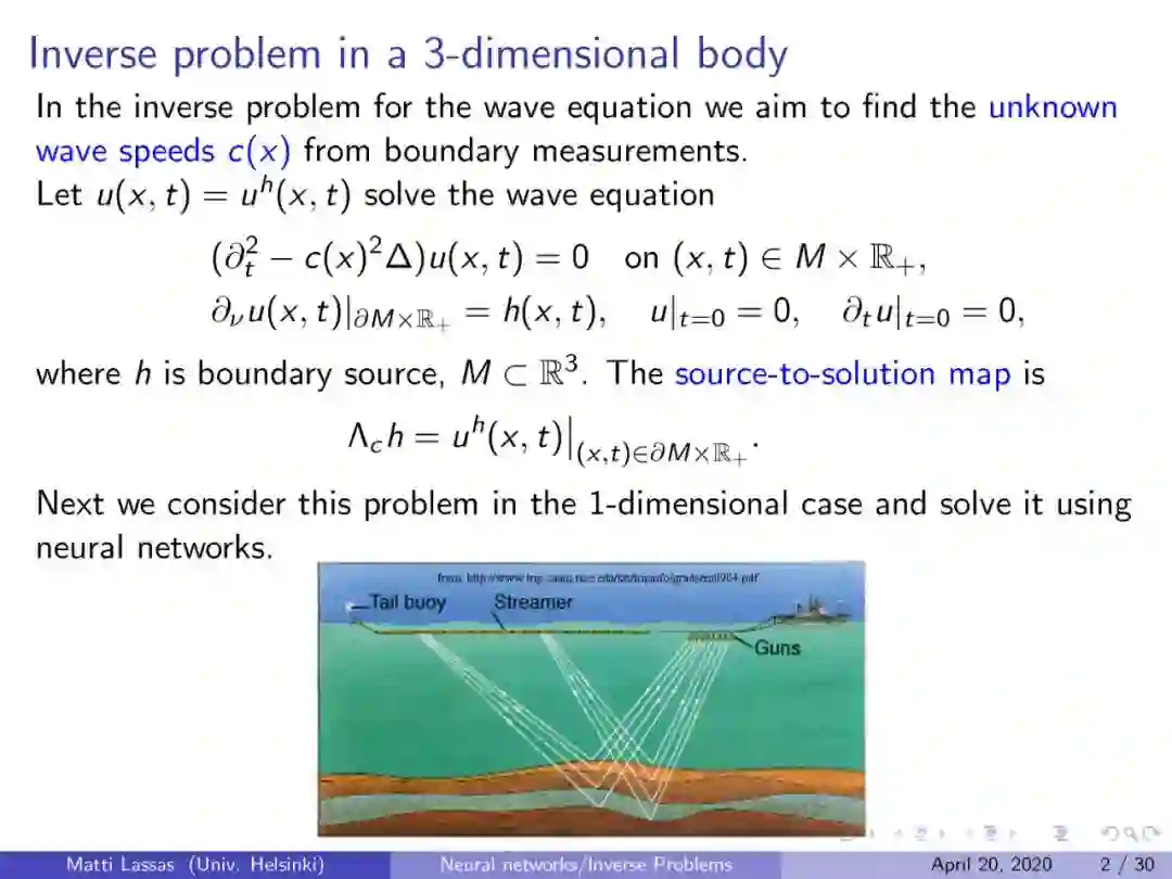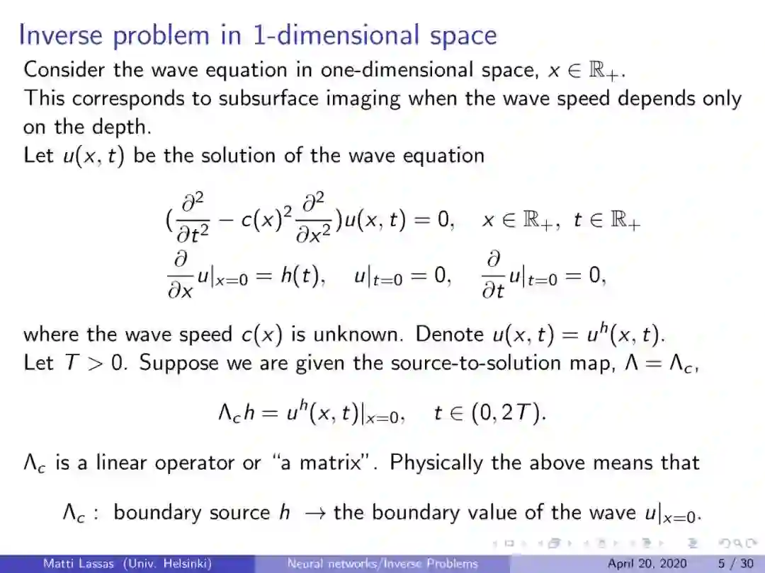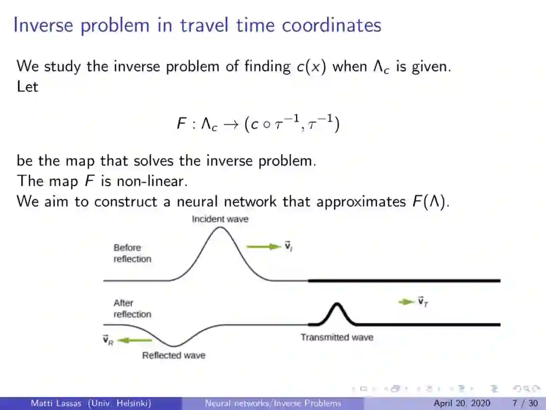 我们考虑了一种用于求解非线性逆问题的新型深度神经网络。特别地,我们考虑一个波动方程的反问题,在这个方程中,人们想要从边界测量中确定一个未知的波速。特别地,我们考虑的模型中,波的传播是由线性声波方程在一个区间。所研究的神经网络的一个新特性是数据本身在网络中形成层次。这对应的事实是,逆问题的数据是一个线性算子,它将边界源映射到从未知介质反射回来的波的边界值。虽然波动方程的建模是线性的,但求方程系数的逆问题是非线性的。利用经典的逆问题理论,设计了一个神经网络结构来求解求未知波速的逆问题。这使得严格分析神经网络的特性成为可能。