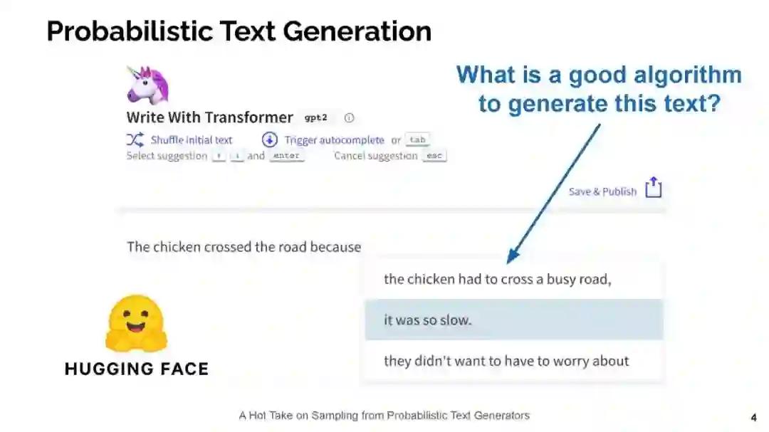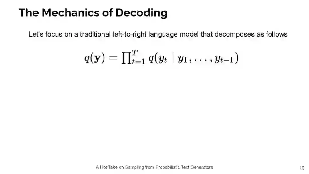 今天的神经语言模型似乎很好地模拟了句子的分布情况,也就是说,它们能够给递出的文本分配高概率。然而,在用于生成文本时,这些相同的模型经常表现不佳——实际上,文本神经语言模型放置的高概率通常是枯燥和重复的。所以,一个好奇的人可能会问:这是怎么回事?在这次演讲中,我将通过信息理论的视角来探讨这一明显的矛盾。具体来说,我认为人类使用语言作为一种沟通渠道。在这种情况下,人们往往会说出既简洁高效,又容易理解的句子。因此,我断言,当我们使用语言模型来生成文本时,我们应该采用类似的原则。这一原则导致了一个简单的抽样策略,我称之为典型抽样。典型的抽样不是每次迭代都从分布的高概率区域中选择单词,而是选择信息量(负对数概率)接近条件分布p(y | y1,…,yk)熵的单词,即分布的平均信息量。我们发现,典型抽样在质量方面优于最近提出的几种抽样算法,同时持续减少退化重复的数量。