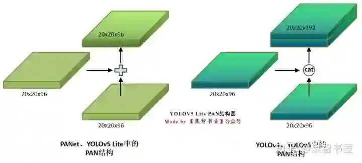 而YOLO v5 Lite也不例外的使用了FPN+PAN的结构,但是Lite对yolov5 head进行通道剪枝,剪枝细则参考了ShuffleNet v2的设计准则,同时改进了YOLOv4中的FPN+PAN的结构,具体就是: