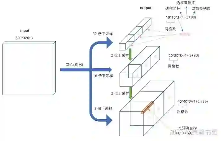 总的来说,就是将目标先进行3种下采样,分别和目标落在的网格产生的 9个anchor分别计算iou,大于阈值0.3的记为正样本。如果9个iou全部小于0.3,那么和目标iou最大的记为正样本。对于正样本,我们在label上 相对应的anchor位置上,赋上真实目标的值。
