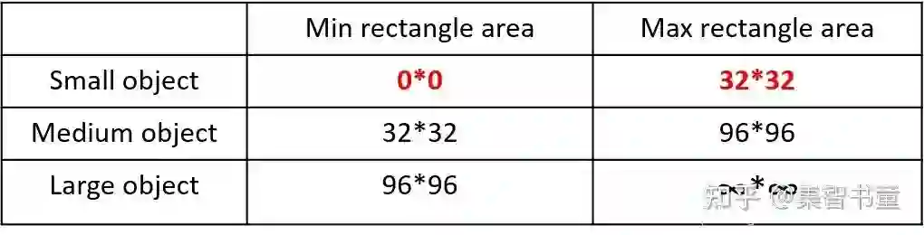 可以看到小目标的定义是目标框的长宽0×0~32×32之间的物体。