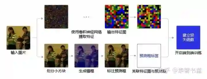 在网络训练中,网络在初始锚框的基础上输出预测框,进而和Ground Truth进行比对,计算两者差距,再反向更新,迭代网络参数。