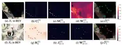 通过无人机2传递的稀疏但有效的信息(图h),无人机1在被建筑遮挡的视角盲区内得以实现有效感知