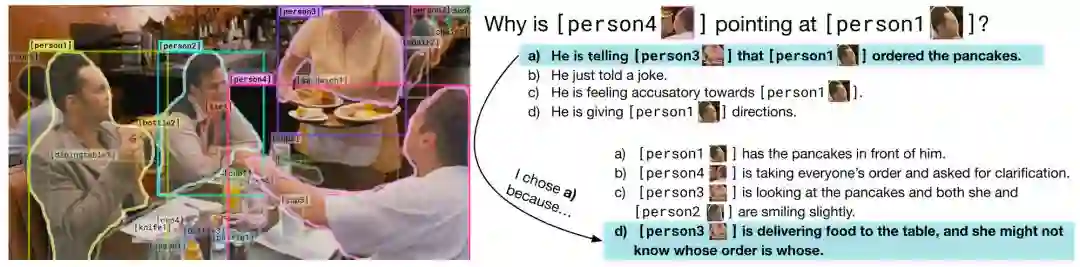 这是首个包含每个答案的基本原理(解释)的可视化 QA 数据集。而且,回答问题需要复杂的推理。创作者竭尽全力解决可能出现的偏好,确保每个答案作为正确答案的先验概率为 25%(每个答案在整个数据集中出现 4 次,其中 3 次作为错误答案,1 次作为正确答案);这需要利用可以计算相关性和相似性的模型来解决约束优化问题。
