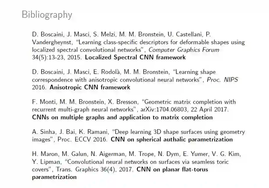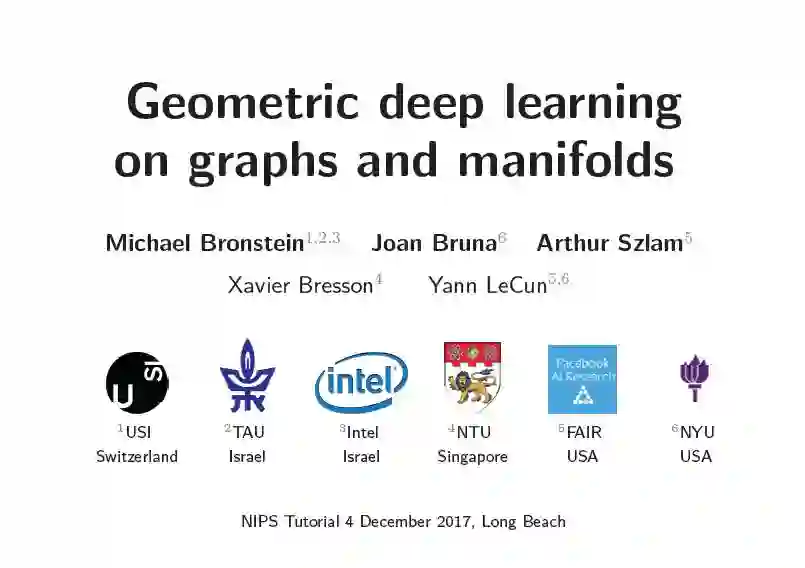 【导读】美国时间 12 月 4 日,第 31 届神经信息处理系统大会(Neural Information Processing Systems,NIPS)在美国加州长滩的会展中心正式开幕!NIPS是人工智能和机器学习领域的顶会,来自世界范围内优秀的科学家、研究人员和从业者都将汇聚一堂,相互切磋工作,将在未来的五天里共同讨论和分享人工智能的前沿想法和未来发展。每年 NIPS 的会议上,都会有非常重量级的 tutorial 和工作发表。今天,专知内容组整理Michael Bronstein教授讲解的Tutorial《Geometric Deep Learning on Graphs and Manifolds》(图和流形的几何深度学习)分享给大家。
