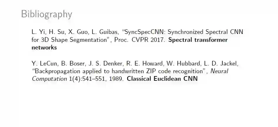 作者提出一个统一框架可以将CNN结构推广到非欧几里得域(图和流形)中,并可以学习局部的,平稳的,组合的特定任务特征。作者也表明了先前文献中提出的各种非欧几里得CNN方法都可以被视为作者提出框架的特例。最后,作者在图像,图和三维形状分析领域的标准任务中测试了提出的方法,结果表明都优于先前的方法。