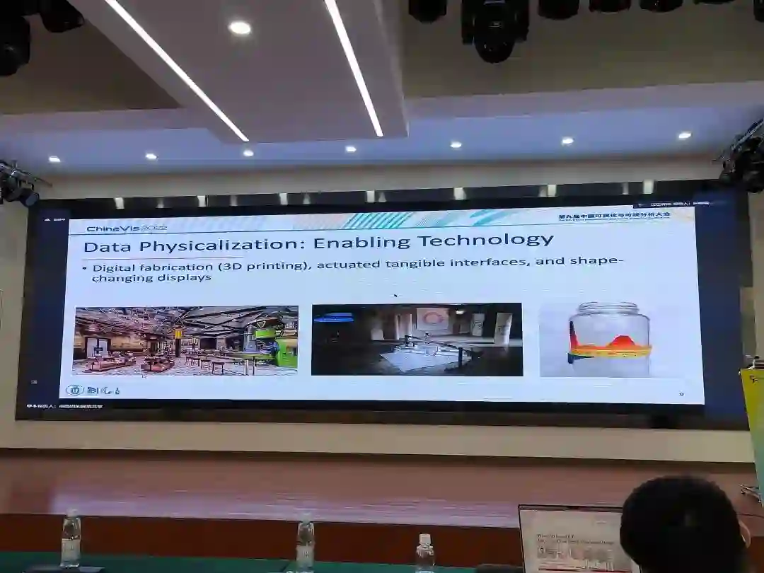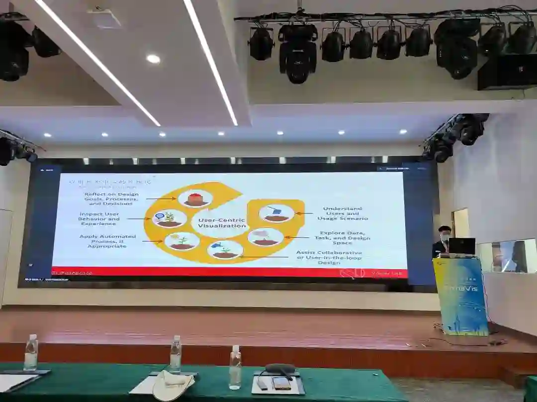 交互可视化专题由合肥工业大学路强副教授主持,邀请了南方科技大学安鹏铖助理教授、上海科技大学李权助理教授、香港科技大学麻晓娟副教授、浙江财经大学张翔讲师进行专题研讨。安鹏铖助理教授探讨了如何以交互方式让职业实践人群在行动中反思(Reflection-in-action),阐述了在教室和医院环境中开展的一系列设计实践研究,通过将智慧环境作为整体,形成一个“宏观”的人机界面。香港科技大学麻晓娟副教授结合案例阐述了不同感官通道(如视觉、味觉、触觉、嗅觉、听觉)对于交互模式与数据体验的影响。上海科技大学李权助理教授论述了以用户为中心的可视化设计和交互的生命周期,认为以用户为中心的可视化需要理解目标用户,探索数据、任务和设计空间,与目标用户协同设计。浙江财经大学的张翔讲师介绍了在面向知识图谱构建的可视分析与人机交互方法研究,围绕面向多类型语料数据半自动化实体标注方法、交互式实体智能抽取方法、交互式关系抽取与校正方法展开介绍。