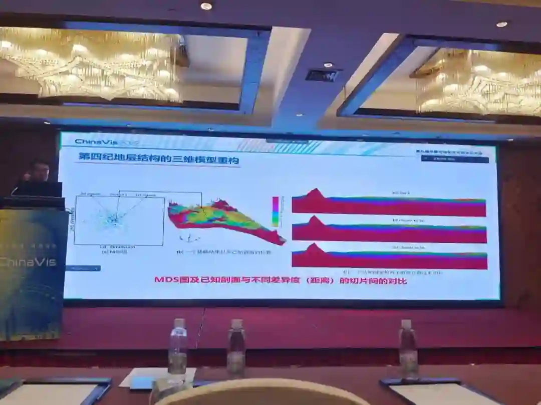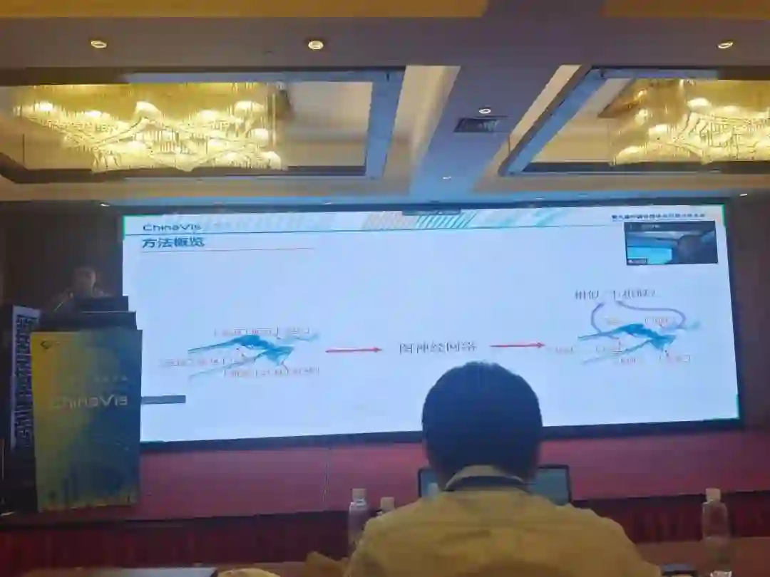 论文报告Session 3 “科学可视化”共分享了4篇论文。中国科学院的学者介绍了一个渐进式视觉分析系统,该系统可以对数据进行实时分析和可视化,并能够有效减少数据存储。天津大学的学者提出了一种基于增强超分辨率生成对抗网络(ESRGAN)的大规模体数据可视化方案,实现了在缩减数据的同时保留视觉特征。北京应用物理和计算数学研究所的学者针对GPU上的大规模统计可视化提出了一种统计摘要模型驱动的自适应数据重建方法,能够在GPU上高效、高质量地重建统计摘要数据。天津理工大学的学者提出了基于深度学习模型的细颗粒物污染预测方法,该方法能够在普通个人电脑上实现高精度、高效率的预测污染情况。