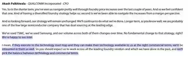 另外,高通还称自己是少数拥有领先优势的双重采购大型半导体公司之一。高通在代工方面选择过台积电也选择过三星,并且两家代工厂的订单也一直在变化中。