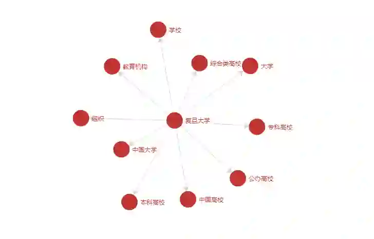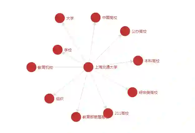 当用户需要判断“复旦大学”和“上海交大”是否相似时,仅仅根据字面相似性,很难知道它们是相似实体。但是通过CN-Probase,我们可以看到它们的概念是差不多的(如下图),从而可以判断它们在语义上是相似的。